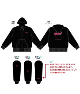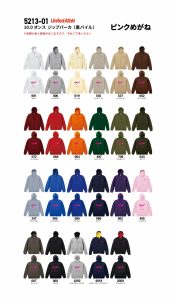 1.フルジップ(印刷代込み、送料無料 白めがね)SからXLまで7,500円 XXL8,500円(オプション:アッシュカラーは+1,000円、ぴんくめがねへの色変更は+1,000円追加、左胸に4センチx6センチの刺繍の場合は1,500円追加左袖肩、肘にも移動可能。手首は要相談。)